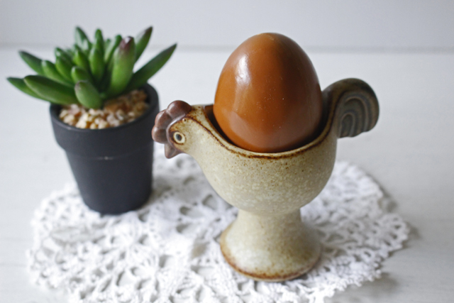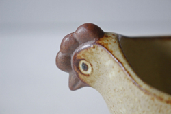 スウェーデン、リサ・ラーソン(Lisa Larson)のメンドリのエッグスタンドです。イースターの際に使用するタマゴ入れとエッグスタンドが作られました。可愛らしいサイズで、親鳥と一緒に飾っても、単品で飾ってもどちらでも楽しめます。釉薬のかかり具合も、味わいがありよい雰囲気です。