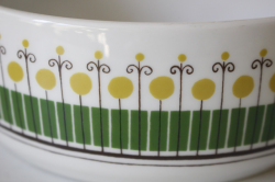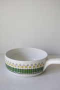 スウェーデン、Rorstrand(ロールストランド)/Wasaの持ち手つきのボウルです。こちらはスウェーデンを代表するデザイナーのひとりCarl Harry Stalhaneのデザインで、1962~1967年の5年間だけ製造された希少なシリーズです。グリーンと抑えめのイエロー、そしてブラウンが全体を引き締めています。パッと目を引く美しい配色は、食卓を華やかに演出してくれるでしょう。