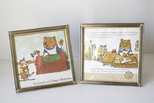 デンマークのアンティークショップで見つけたフォトフレームです。中にはアンティークの刺繍やレース、また写真や古い絵本の切抜きを入れても素敵なインテリアとしてお使いいただけるでしょう。掲載写真には絵本の切り抜きが入っています。