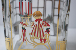 デンマークの王室御用達ブランド、Holmegaardのクリスマスボトルです。こちらは1981年から毎年発売されている人気のシリーズで、毎年違ったクリスマスの心温まる場面がデザインされています。デザイナーは、Michael Bang がフォルムを、 Jette Frolichがデコレートを担当しています。側面には1~24までの数字が目盛として描かれ、12月1日から毎日一目盛ずつお酒を飲んでクリスマスを待つという子供たちのJULカレンダーの大人バージョンのようなものでしょうか。毎年コレクションしたくなるお品ですね。