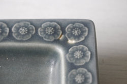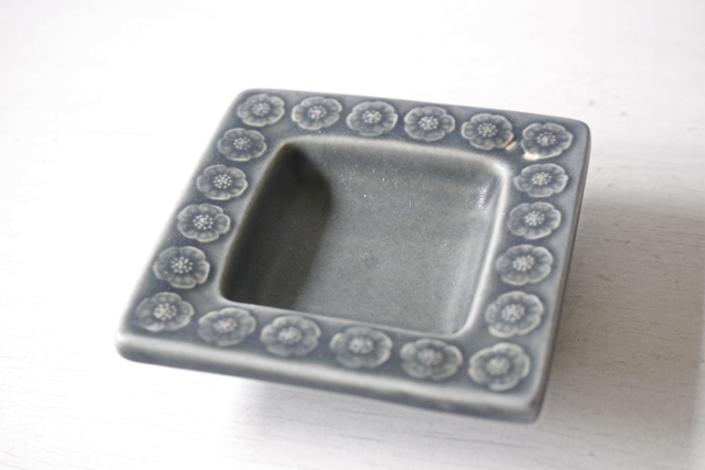 デンマーク、Jens.H.Quistgaard(イェンス・クイストゴー)デザインAzurシリーズの角皿です。杏の花の可愛らしいモチーフでありながら、ブルーグレーの落ち着いた色合いが甘くなりすぎず素敵です。ツヤのないマットな釉薬が使われており、見ていてホッと和む雰囲気を持っています。ちょっとしたお菓子やおつまみ、お茶の際にお砂糖を入れても良いですし、お食事の際に梅干しやピクルスなどを盛り付けて食卓に出すなど、いろいろな用途にお使いいただけます。