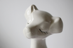 デンマークで見つけた犬モチーフのオブジェです。こちらは真っ白のすらっとしたフォルムで、耳の折れた愛らしいワンちゃんがおすまし顔でお座りをしているデザインです。玄関先やキッチン、お気に入りの場所にお気に入りのヴィンテージの食器や雑貨などと、一緒に飾り、ほっこりとした空間をお楽しみください。おすまし顔が、とても可愛くおススメです。