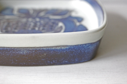 デンマーク、Royal Copenhagen(ロイヤルコペンハーゲン)のバッカシリーズの角皿です。こちらは、Kari Christensen ( カリ・クリステンセン )デザインでお花が抽象的にデザインされており、ネイビーの濃淡が美しいお皿です。