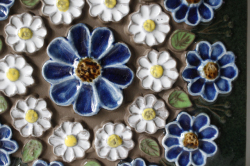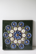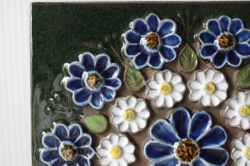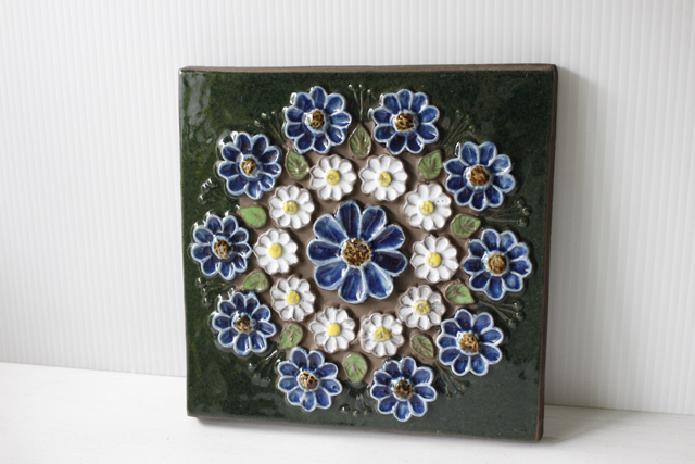 スウェーデンのjie gantofta社製の陶器の壁掛けです。Jieの陶板は可憐なお花がデザインされているものが多く、可愛らしいものからシックなものまでいろいろあります。こちらはコバルトブルーとホワイトのフラワーリースのデザインで大変華やかです。コロンとした愛らしいモチーフはお部屋を明るく彩ってくれそうです。