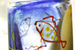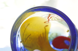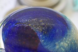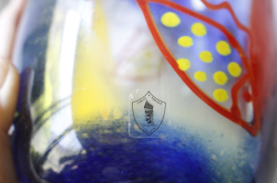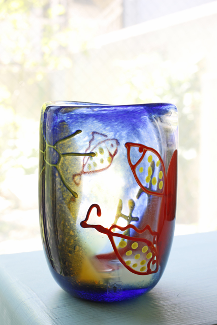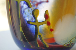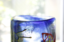 ※カルロス・ペバケは、10年間スウェーデンのガラスメーカーオレフォスで勉強し独自の技法を編み出していきました。力強い色彩と官能的な姿を持ち、独自のカーラ技法でユニークなアートガラスを生み出しています。 実際に吹きながらガラスに絵を描く技法です。