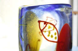 スウェーデン、デザインアートガラスの花瓶です。デザインはorrefors等でも製品を手掛けるスウェーデンのガラス工芸アーティスト Carlos R. Pebaque 。鮮やかな色合わせで、インパクトがあります。