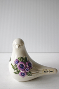 スウェーデン/Rosa Ljungデザインのオブジェです。こちらは小鳥がモチーフになっていて中央には、Rosa Ljungの得意なお花がデザインされており可愛らしい雰囲気です。こちらはパープルがポイントの素敵な色合いの鳥オブジェです。