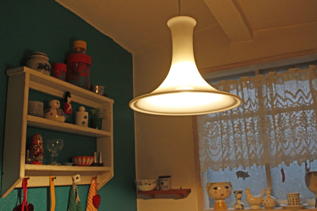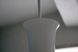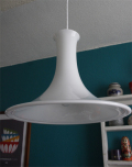 1925年創業、デンマーク王室御用達ブランドHolmegaard(ホルムゴー)のペンダントランプです。もちろん素材はガラスで、ピュアホワイトとクリアガラスの2重構造となっております。上品な雰囲気は食卓をスタイリッシュに照らしてくれるでしょう。上質なガラスならではの滑らかな肌さわりも魅力ですね。すっきりとしたシンプルなフォルムがステキです。電気器具は、日本仕様に電機メーカーに依頼して取り付けていますのですぐにお使いいただけます。