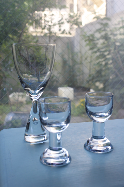 デンマーク、Holmegaard(ホルムゴー)のガラスのグラスです。こちらは柔らかな曲線が美しいフォルムです。一つ一つハンドメイドで作られたグラスは手にしっくりと馴染み、濃いリキュールなどをなどを少しずつお飲みいただくのに最適です。