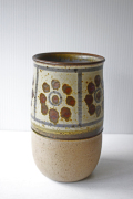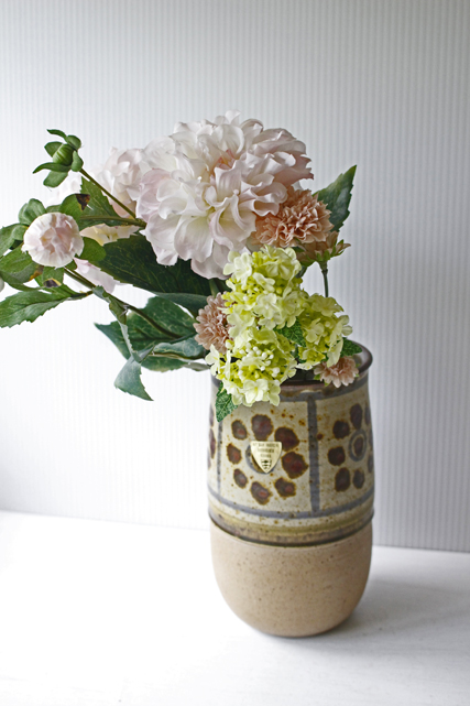 デンマーク、Michael Andersen & Son社の花瓶です。こちらは土の温もりが感じられる優しい色合いの花瓶で、素朴なフラワーモチーフが手書きで描かれています。どっしりとしたフォルムで実用的にお花を飾るのにおすすめです。