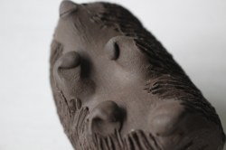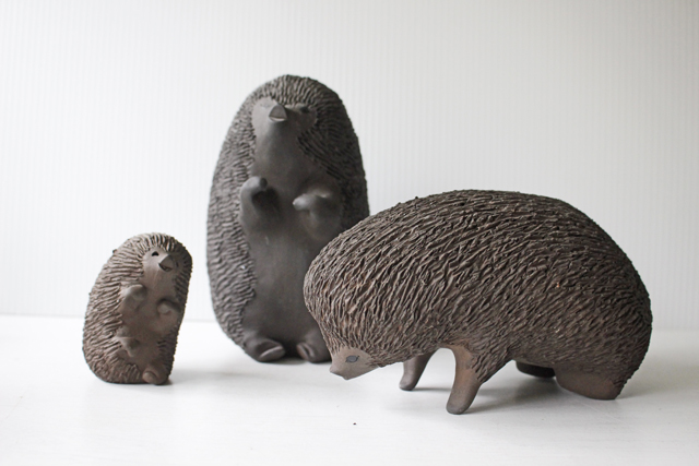 デンマーク、エレン・カールセンデザインのハリネズミの置物です。釉薬のかけられていない、素朴な土の質感が感じられます。ハンドメイドならではの、1点1点表情や背中の針の感じも違っていているところが魅力です。お母さんも入荷しておりますので、是非ご家族で飾ってみてください。