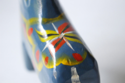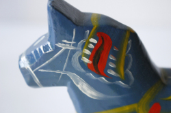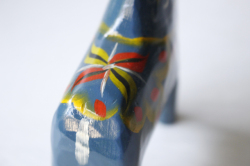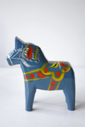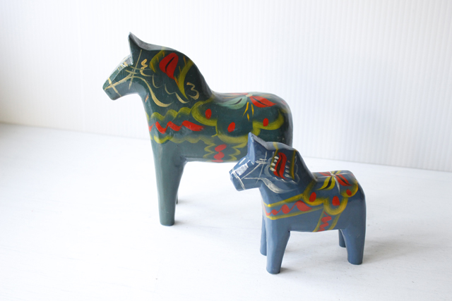 スウェーデン製のダーラナホースです。ダーラヘスト(スウェーデン語でダーラナ馬という意味)は、18世紀の始め頃、木こりの人たちが 仕事が終わった後に遊び半分に作った木彫りの馬が始まりといわれています。その後この木彫りの馬は、子供達のおもちゃとして自然に定着していき、赤く色が塗られるようになったのは19世紀になってからです。日本ではダーラナホース (スウェーデンの木の馬)という名前で紹介されています。現在はスウェーデンそのものを象徴するものとされています。スウェーデンでは古くから馬は幸せを運んでくれるとされ親しまれています。今回入荷分はブルーグリーンで珍しいです。