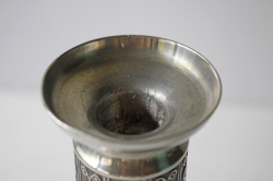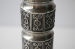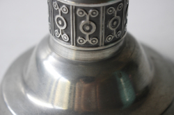 ノルウェー製のピューターのキャンドルホルダーです。こちらは丁寧にハンドメイドで作成された味わいのあるデザインで、燻した様な銀色が美しい作品です。どっしりと存在感のある作りで、実用的にも使いやすく、ピューターがお好きな方におすすめしたい作品です。