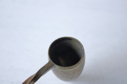 デンマークで見つけた真鍮のろうそくの消すためのカバーです。ろうそくを吹き消さないで、こちらの火消をかぶせるときれいに火を消す事ができます。一緒に飾ると雰囲気もアンティーク、ヴィンテージらしい趣があり、素敵なインテリアが演出できそうです。こちらは長さのあるタイプで存在感があります。