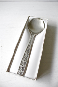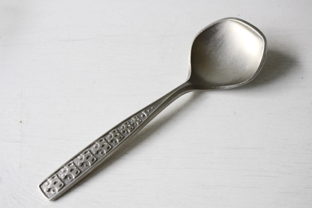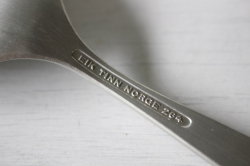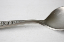 ノルウェー製のピューターのスプーンです。こちらは先っぽが尖っていないフラットな作品で、ピューターならではの、いぶしたような味わいが素敵な雰囲気です。王冠モチーフが北欧らしく、クールなピューターの中にも、可愛らしさがあります。