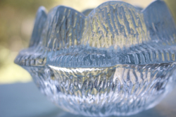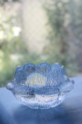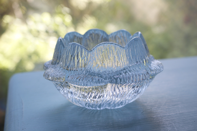 デンマーク、ホルムガードのヴィンテージのガラスのキャンドルホルダーです。こちらはどっしりとした作りのフラワーモチーフのキャンドルホルダーで、安定感があります。いくつかのティーキャンドルなどと一緒に飾って頂くと、大変美しく、コージーな明りを楽しんで頂けそうです。ティーキャンドルを1個プレゼントします。