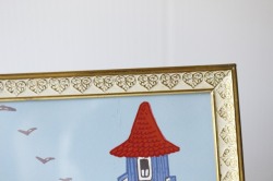 デンマークのアンティークショップで見つけたフォトフレームです。中にはアンティークの刺繍やレース、また写真や古い絵本の切抜きを入れても素敵なインテリアとしてお使いいただけるでしょう。掲載写真には切り抜きのイラストが入っています。淵回りがハートでぐるりとデザインされ、可愛いフレームです。