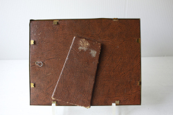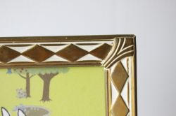 デンマークのアンティークショップで見つけたフォトフレームです。中にはアンティークの刺繍やレース、また写真や古い絵本の切抜きを入れても素敵なインテリアとしてお使いいただけるでしょう。掲載写真には切り抜きのイラストが入っています。淵回りがダイヤ模様でぐるりとデザインされ、可愛いフレームです。