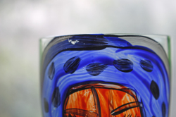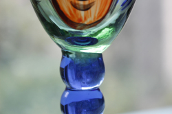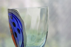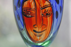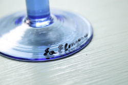 ヴィンテージのアートグラスです。ハンドペイントで大胆に女性の顔が描かれたユニークな作品で、実用的だけでなく、飾っても楽しめそうですね。こちらはスウェーデンのデザイナー、Ea Elmgrenと作家さんの直筆のサインもグラスに書かれています。絵が個性的でユニークなだけでなく、グラス自体も持ち手部分の丸みのあるフォルムに側面は波打っており、コバルトブルーの色が美しく、グラスの底の部分も透明感のあるエメラルドグリーンでとても素敵なデザインです。
