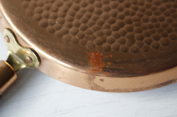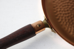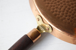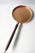 デンマークで見つけたチーク×銅製のフライパンです。飴色の美しいフライパンで、大変おしゃれでです。持ち手がチークで高級感もあり、取っ手に穴が開いているので、フックに引っ掛けてキッチンのデコレーションとしても使えそうですね。