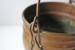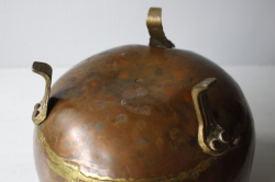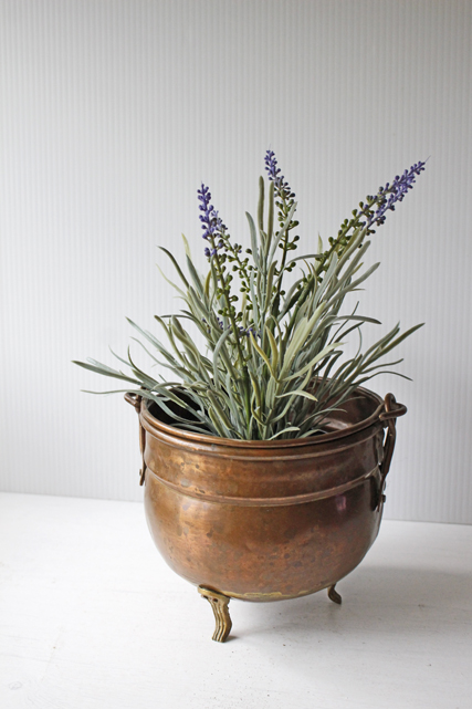 デンマークで見つけた真鍮の鉢カバーです。銅色の美しい色合い、しっかりとした作り、またフォルムが脚付き、持ち手付きと大変凝った作りになっています。鉢カバーとして飾って頂くと趣もあり、シャビークラッシックがお好きな方、インテリアに取り入れてみてはいかがでしょうか。
