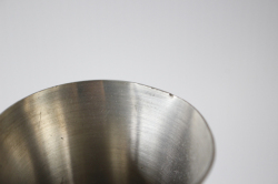 ※錫(ピューター)…古来よりヨーロッパや中国で金属食器やアクセサリーとして使われてきました。他の金属のように錆びたりすることなく、耐変色性に強く、金のように水を浄化する能力があると言われています。また、銀白色の美しい金属光沢を永く保つことが大きな特徴です。お手入れは、中性洗剤で洗ったあと水気をふき取る。汚れ(表面の黒ずみ)が出てきたら、少量の歯磨き粉で磨く。その後、ぬるま湯で洗い流し水気をふき取る。