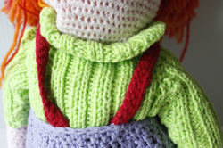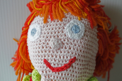 デンマークで見つけたあみぐるみの女の子です。こちらは、手編みのハンドメイド感溢れるユニークなお人形で飾ると可愛らしくてお勧めです。赤毛のユニークな表情の女の子で、洋服やパンツまでも丁寧に編まれており、北欧のハンドメイドの温かみが感じられるデザインです。サイズが大きく、存在感があります。