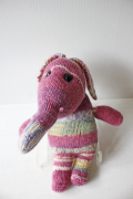 デンマークで見つけたあみぐるみです。こちらは、手編みのハンドメイド感溢れるユニークなお人形で北欧のハンドメイドの温かみが感じられるデザインです。細かい柔らかな毛糸で丁寧に編まれたゾウさんで落ち着いたラベンダーカラーと寒色系の色合いで編みこまれていますので、男の子でも女の子でもどちらでも、気に入っていただけそうです。デンマークの子供たちは寝る際に一緒にベットに連れていくぬいぐるみは必需品で、こちらは手作りの愛情たっぷりな作品で、おすすめです。