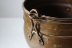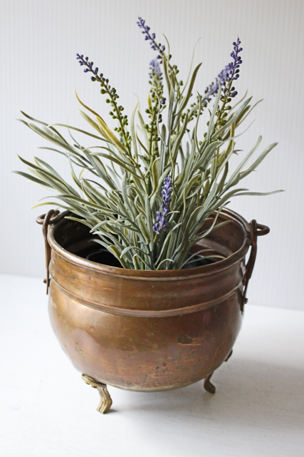 デンマークで見つけた真鍮の鉢カバーです。銅色の美しい色合い、しっかりとした作り、またフォルムが脚付き、耳付きと大変凝った作りになっています。鉢カバーとして飾って頂くと趣もあり、シャビークラッシックがお好きな方、インテリアに取り入れてみてはいかがでしょうか。
