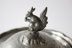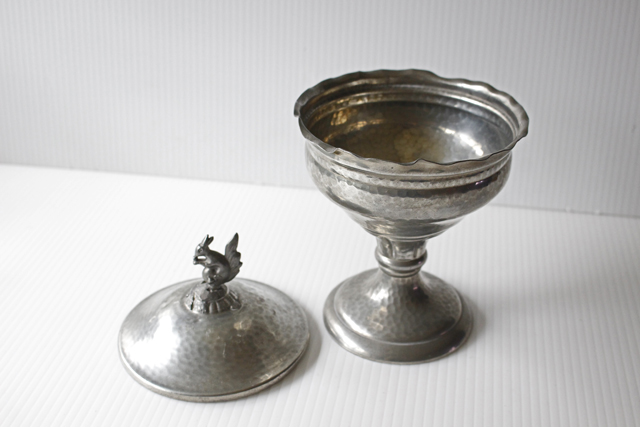 デンマークで見つけた錫製のオブジェボウルです。こちらは丁寧にハンドメイドで作成された味わいのあるデザインで、リスとどんぐりという、ガーリッシュなモチーフが大変可愛らしいです。脚付きのおしゃれなフォルムで、蓋つきですので、多様にお使い頂けそうです。