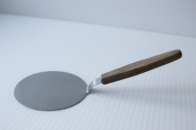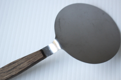 デンマーク製、ヴィンテージのケーキサーバーです。チークの持ち手にステンレスの素材で、丸いフォルムは珍しく、コロンとした可愛らしい印象です。