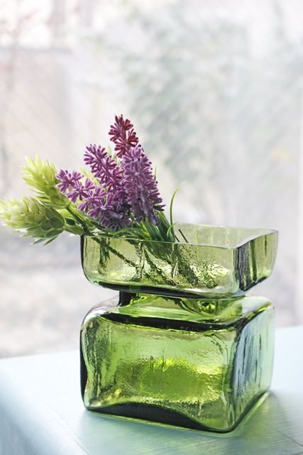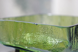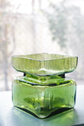 フィンランド/Riihimaen lasi社のPalaシリーズの花瓶です。こちらは同社で活躍したデザイナーHelena Tynellによるもので、様々なカラーや大きさがあることで知られています。今回入荷分は、エメラルドグリーンで一番大きなサイズです。飽きのこない今もガラスのコレクターに人気のあるベースです。落ち着いた色合いなので明るいお色のお花を活けると映えるでしょう。表面が波打ったように作られているのでガラスなので表情がある素敵な雰囲気です。