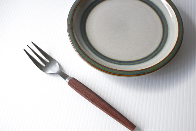 デンマーク、ヴィンテージのフォークです。フォークの先はステンレス、柄は木目の美しいローズウッド材です。使用感の少ないものは珍しいのでおススメです。