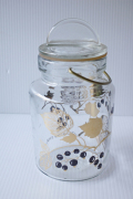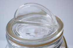 フィンランド、Riihimaen社の密閉ができる蓋付きの保存ボトルです。1910年創業のリヒマエン社は、主に家庭用のボトルやケースを製造していたガラスメーカーです。中でもこちらの保存容器は、開閉の仕組みにもデザイン性が感じられ、キッチンに飾っておきたくなります。底にはリヒマエン社のトレードマークのオオヤマネコがデザインされています。250mlごとにメモリがついているので、オリーブオイルやミルクを保存するのはとても便利かもしれません。ピクルスやフルーツのシロップ、塩レモンなどを作ってみてはいかがでしょうか。
