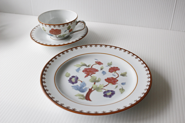 スウェーデン、Rorstrand(ロールストランド)のケーキプレートです。こちらは、Edenシリーズで愛らしいフラワーモチーフが全面にデザインされています。色合いが落ち着いた感じで東洋的な美しさもあります。裏面にもお花がデザインされており、手の込んだ作品です。