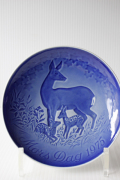 デンマーク・B&G社の母の日プレートです。毎年動物の親子をモチーフに発表していたようです。こちらは1975年のもので、シカのお母さんの周りに2匹の可愛らしい子供たちがじゃれて飛び跳ねている様子が描かれています。お母さんの優しいまなざしがほっこりします。イヤープレートより小さめのサイズです。