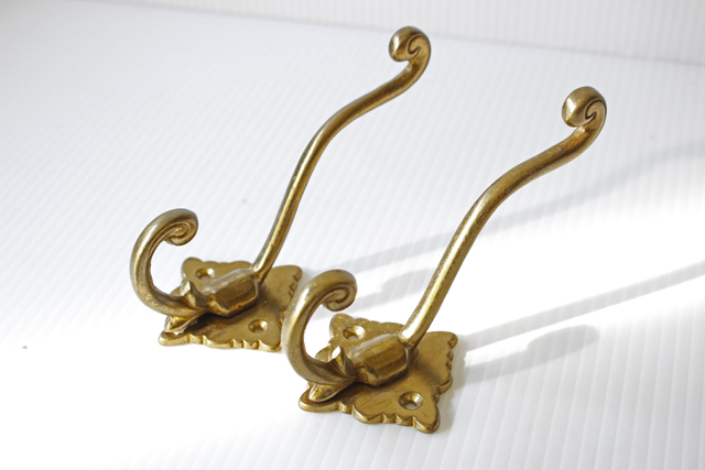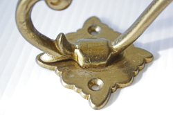 デンマークで見つけた真鍮の壁掛けです。こちらはクラシカルなデザインで、アンティークらしい雰囲気があります。しっかりとした真鍮で高級感があります。固定した後は上の段、下の段と2段でコートやバック、カバンなどを掛けれるので大変実用的です。玄関のプチリフォームにいかがでしょうか。