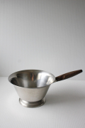デンマークで見つけたヴィンテージのステンレスソースパンです。柄にはチーク材が使われており、シャープなステンレスに温かな雰囲気をを出しています。大きめのサイズで持ち手のカッティングも美しく、おすすめです。