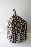 デンマークで見つけたハンドメイドのポットカバーです。チョコレート色の地に素朴なホワイトのフラワーモチーフが可愛く、ハンドメイドの温かみがおすすめのデザインです。形状は四角錐で薄く綿が入っています。撮影時に使用したティーポットはΦ16.5cm、持ち手含む高さ20cmです。