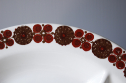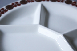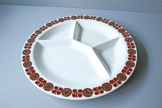 フィッギオの中でも可愛らしいレトロモダンなモチーフが多く、今でも人気のあるチューリデザインのランチプレートです。こちらはMoroccoシリーズで、モロッコをイメージしたアースカラーの模様が描かれています。縁取りの愛らしいモチーフと、仕切りのある凝ったタイプのプレートですので、おもてなしにも素敵ですね。