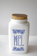 デンマークで見つけた陶器のスパイス入れです。こちらは白磁に味わいのある美しい書体で“Mel(小麦粉)”と書かれています。側面にはレースが細かく描かれており、爽やかなブルーカラーがエレガントでとても素敵です。大きさもたっぷりありますので、キッチンのアクセントにぴったりです。