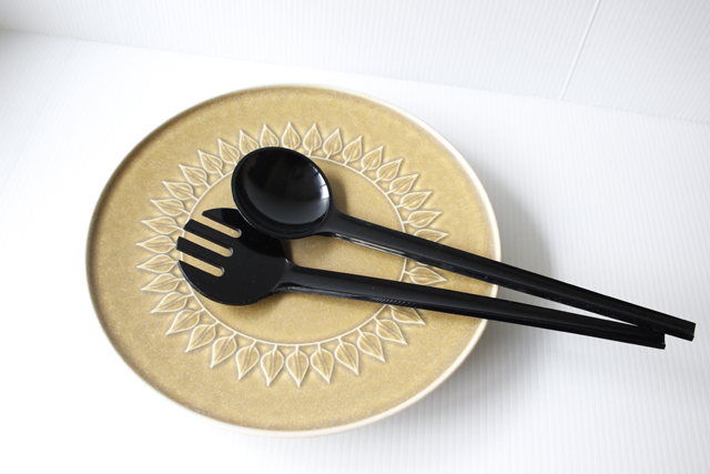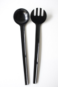 デンマークで見つけたサラダーサーバーです。丸っこいフォルムでとてもデザイン性があります。ORSKOV&CO社は長年にわたり、数々のデザインの作品、チークのお人形から家具、メラニン素材、メタル素材のボウルや真鍮のキャンドルホルダーなど、幅広い作品を生産し、とても高い評価を受けています。シックなブラックカラーがチークなどのボウルと相性がよく、あまり見かけないデザインでおすすめです。