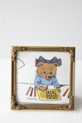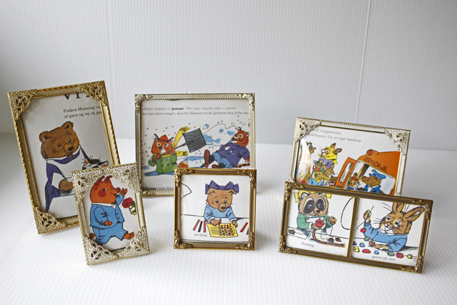 デンマークのアンティークショップで見つけたフォトフレームです。中にはアンティークの刺繍やレース、また写真や古い絵本の切抜きを入れても素敵なインテリアとしてお使いいただけるでしょう。掲載写真には古い絵本の切り抜きが入っています。プクプクした縁周りのデザインが、とても素敵です。