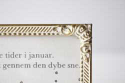 デンマークのアンティークショップで見つけたフォトフレームです。中にはアンティークの刺繍やレース、また写真や古い絵本の切抜きを入れても素敵なインテリアとしてお使いいただけるでしょう。掲載写真には古い絵本の切り抜きが入っています。プクプクした縁周りのデザインが、とても素敵です。