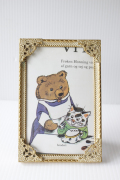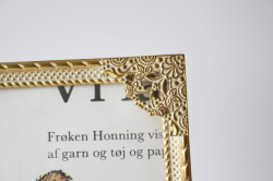 デンマークのアンティークショップで見つけたフォトフレームです。中にはアンティークの刺繍やレース、また写真や古い絵本の切抜きを入れても素敵なインテリアとしてお使いいただけるでしょう。掲載写真には古い絵本の切り抜きが入っています。プクプクした縁周りのデザインが、とても素敵です。