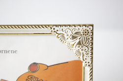 デンマークのアンティークショップで見つけたフォトフレームです。中にはアンティークの刺繍やレース、また写真や古い絵本の切抜きを入れても素敵なインテリアとしてお使いいただけるでしょう。掲載写真には古い絵本の切り抜きが入っています。プクプクした縁周りのデザインが、とても素敵です。