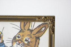 デンマークのアンティークショップで見つけたフォトフレームです。中にはアンティークの刺繍やレース、また写真や古い絵本の切抜きを入れても素敵なインテリアとしてお使いいただけるでしょう。掲載写真には古い絵本の切り抜きが入っています。プクプクした縁周りのデザインが、とても素敵です。