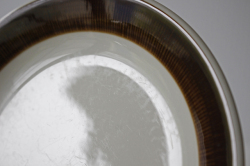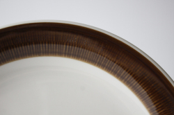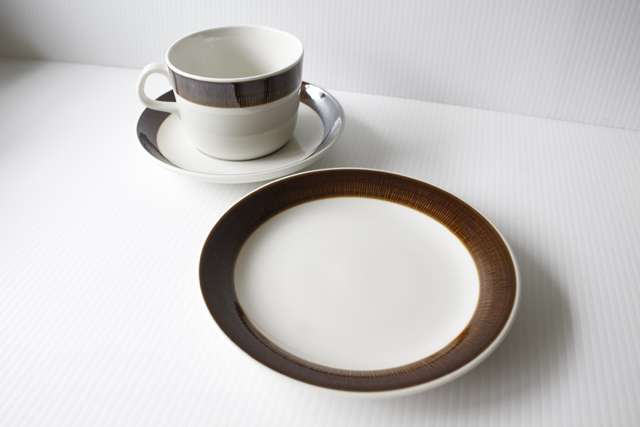 スウェーデン、Rorstrand(ロールストランド)の「KOKA」(男の子の意)シリーズ、ブラウンのケーキプレートです。Hertha Bengtsson(ヘルサ・ベングトソン)デザインの人気シリーズです。清々しい白磁に爽やかなチョコレート色の帯のコントラストが素敵です。