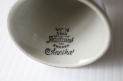 スウェーデン、Rorstrand(ロールストランド)のANNIKA(アニカ)シリーズのエッグスタンドです。ロールストランドのデザイナーMarianne Westman(マリアンヌ・ウェストマン)の代表作です。丸みのあるフォルムとオレンジ×ブラウンの温かみのあるデザインです。手彩色のため、個々に濃淡が違います。エリザベスという別シリーズと一緒に撮影しています。