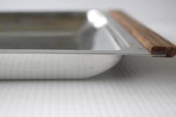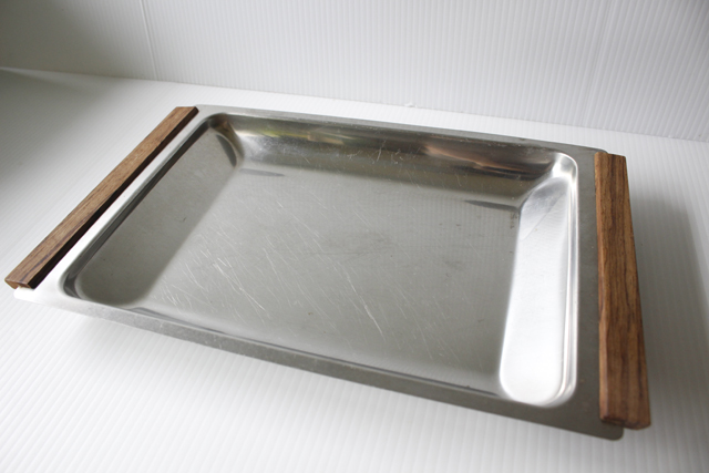 デンマークで見つけたステンレスのトレイです。ステンレスと、チーク素材の組み合わせがシャープな印象のステンレスを温かみのある雰囲気に変えています。料理やお菓子をを盛りつけたり、ワンプレートとして、またはトレイとして…シンプルで機能的な造りですので、アイデア次第で多様にお使いいただけます。